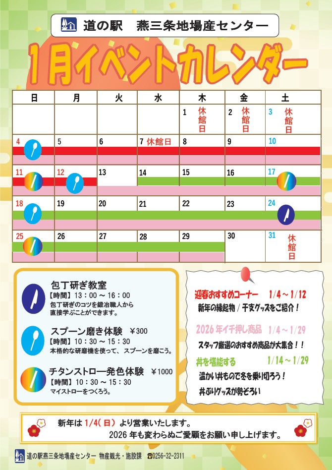 1月の物産館イベント情報をご紹介します。 燕三条地域ならではのイベントへぜひお越しください!