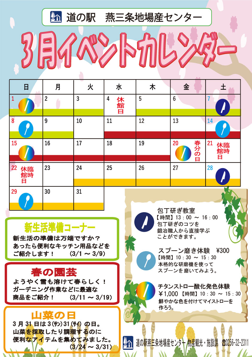 3月の物産館イベント情報をご紹介します。 燕三条地域ならではのイベントへぜひお越しください!